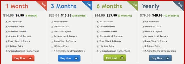 它们仅支持到美国服务器的 PPTP 连接。无限制的 加速器 访问费用为每月 5,00 欧元。